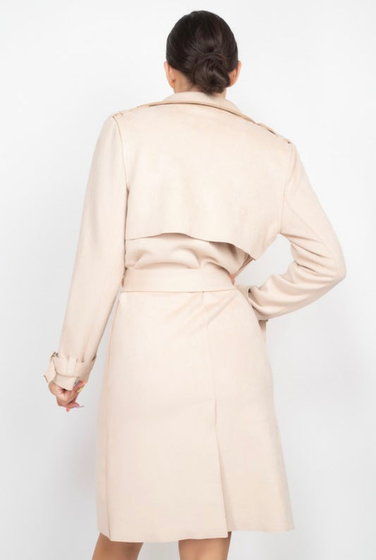 Suede Drape Trench Coat