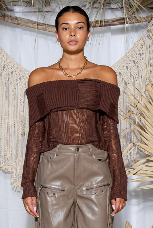 Off-Shoulder Distressed Sweater